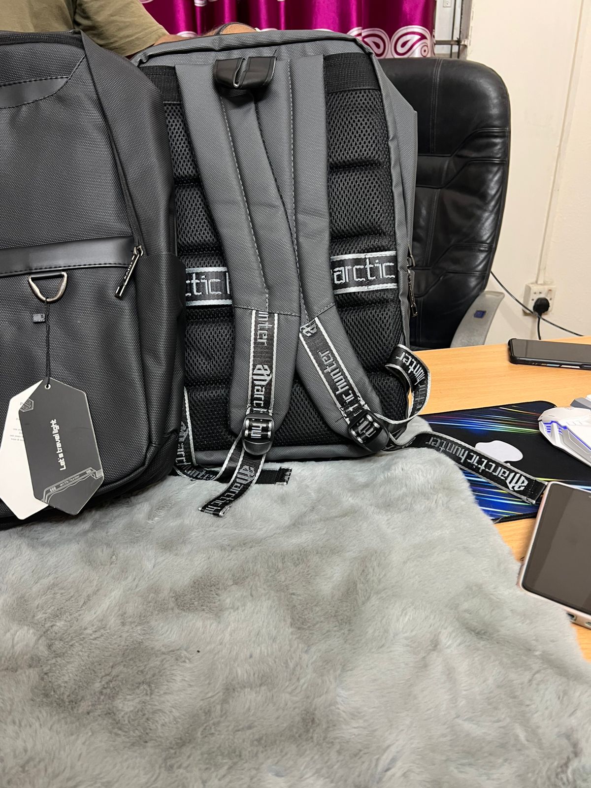 Arctic Hunter B00017 (Grey)(with black leather) Laptop Casual Travel Multi-Function Oxford Waterproof Backpack Bag